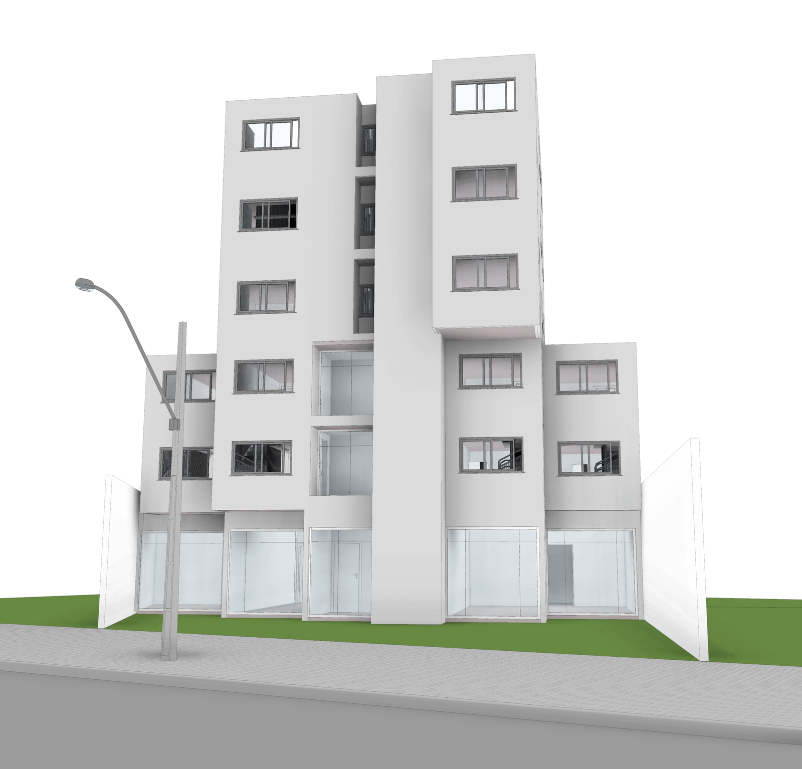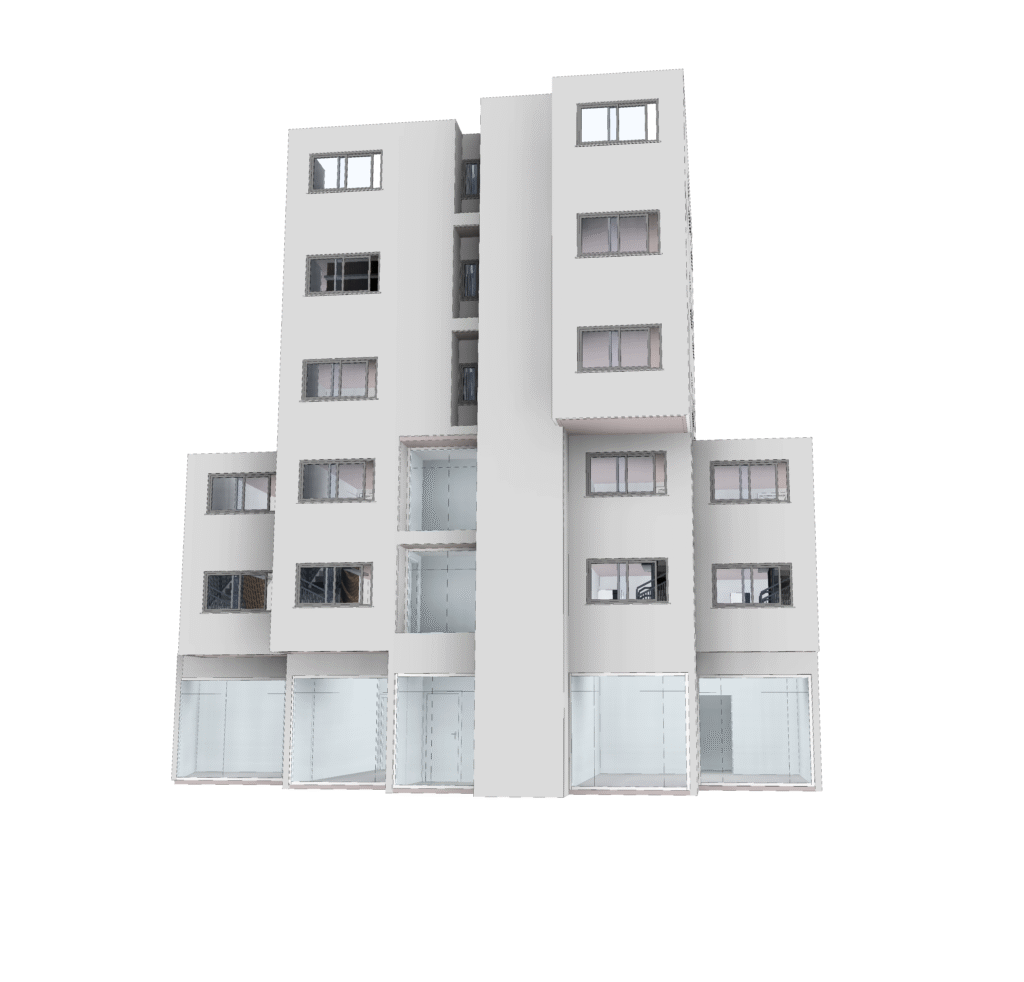 A Entreplanos nos procurou com um ambicioso projeto em fase de estudo de produto e viabilidade, concebido inicialmente em CAD. A necessidade principal era migrar essa concepção para o ambiente do Revit. O desafio consistia em reconstruir o projeto, garantindo não apenas a fidelidade ao design original, mas também preparando-o para futuras análises BIM. O objetivo era, desde já, facilitar a otimização da viabilidade do empreendimento e a compreensão de todos os seus aspectos, que incluem um térreo comercial, um primeiro andar com mezanino residencial e do terceiro ao quinto andar, unidades residenciais.
